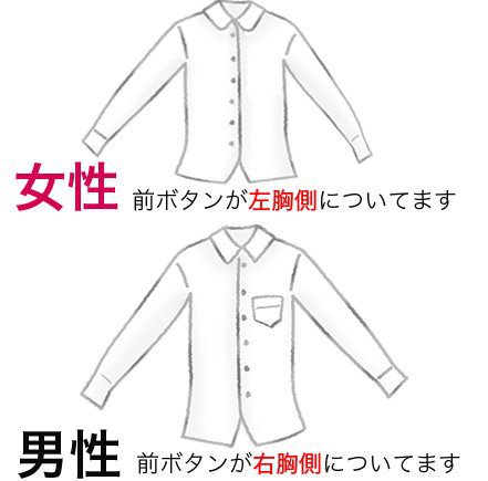 ちなみに西洋の貴族社会において女性用の正装は召使いが着付けるものでした。いっぽうで男性は自分自身で着用していました。この男女の違いがボタン付けの違いに由来しています。しかも多数派である「右利き」にとって留めたり外(はず)したりしやすいように。
