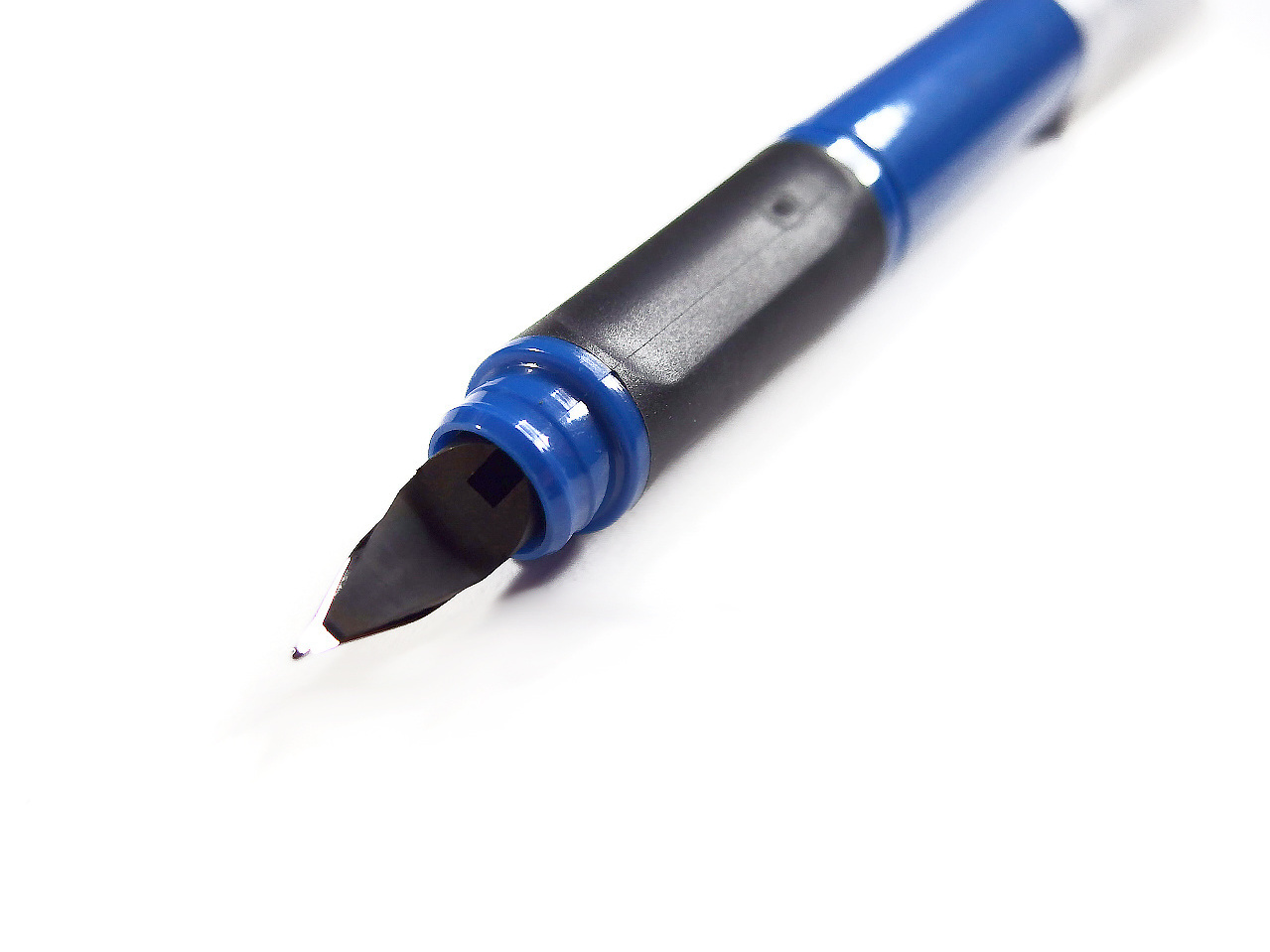 斜めからのアングルですと「ニブ(ペン先)」とグリップの「くぼみ」の関係が“手に取るように”確認できることでしょう。