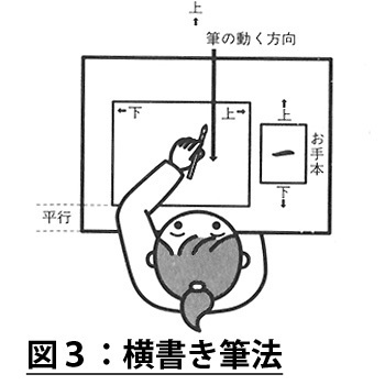 次に紙の置き方から生まれる3つの筆法をご紹介しましょう。
