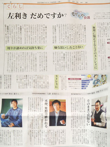 『西日本新聞』(2019年1月25日付)掲載「左利きダメですか?」