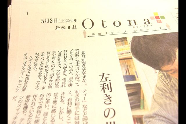 新潟日報の夕刊「おとなプラス」(2020年5月2日)掲載「左利きの世界、得も不便も」