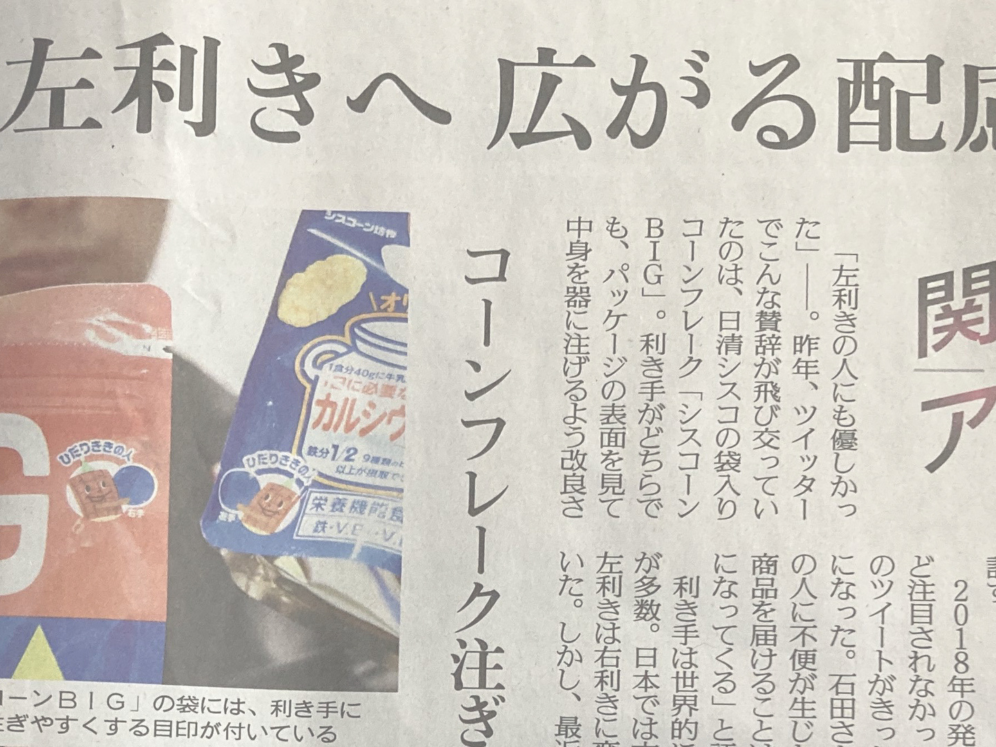最近の左利き事情について、利き手がどちらでも扱いやすいコーンフレークの袋や左利き用のペン習字講座をはじめ、脳内科医による利き手の矯正不要論...etc。そして当協会発起人が「利き手をとおして多様化社会を考えるきっかけづくりを」とコメントしています。