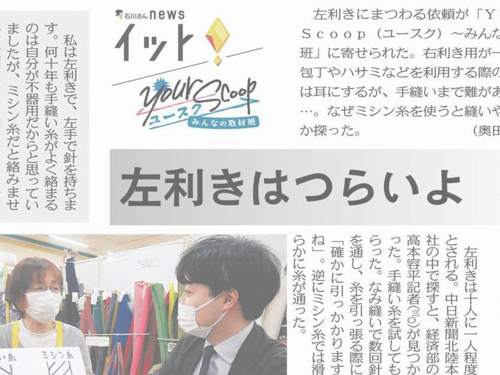 左利き女性の切なる発見を受けて公開された記事が、今回ご紹介する「左利きはつらいよ 不便 実は手縫いでも」です。