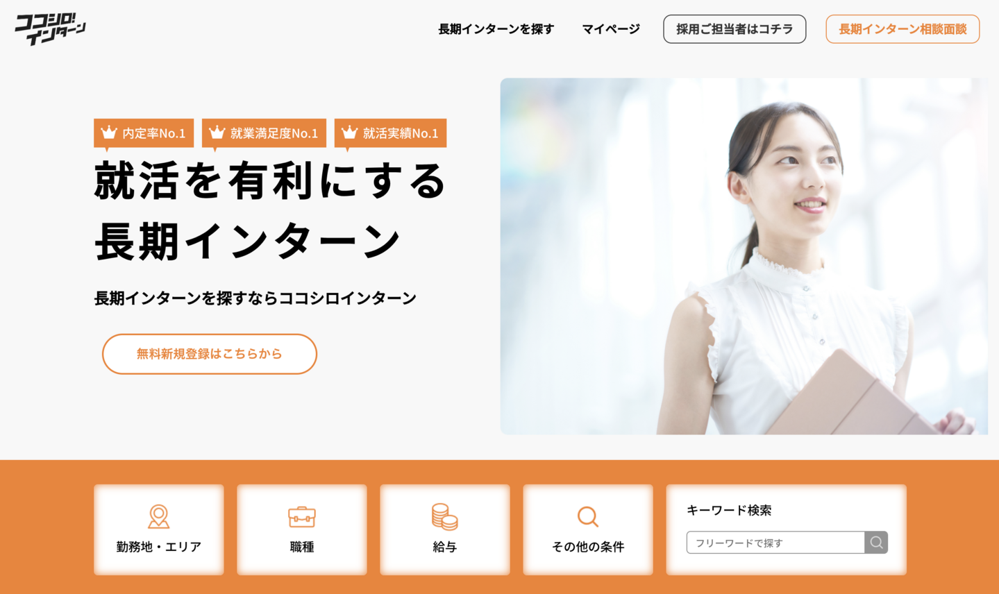 「ココシロインターン」は、長期インターンシップに特化した求人メディアです。大手企業からベンチャー企業まで、幅広い求人を掲載しており、あなたに合った長期インターンが見つかります。専任のキャリアアドバイザーとの面談を通じて、将来設計や面接対策を支援し、あなたの成長をサポートします。