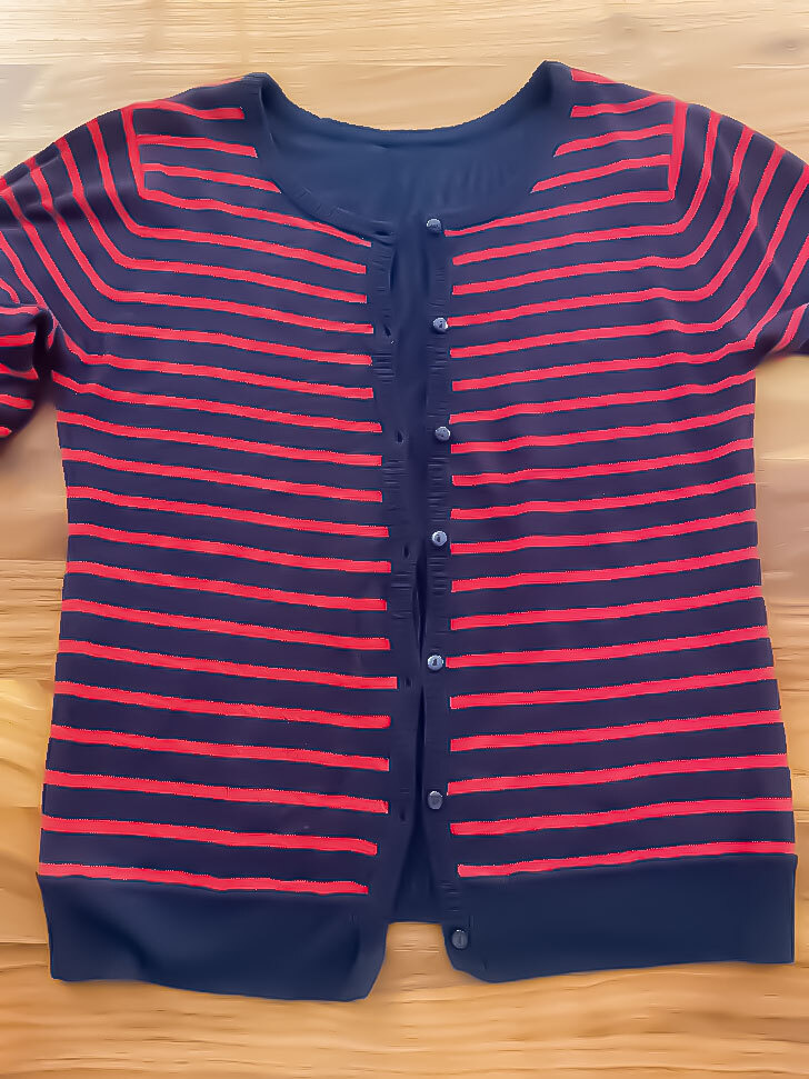いつ頃だったか忘れてしまったが、たしか母に買ってもらったリバーシブルのカーディガン。リバーシブルなので、裏返すとボタンの位置が逆になる。右利きと左利き、どちらも味わえてちょっとおもしろくないだろうか。ちなみに、どちらも味わってみたけれど、右利き仕様の方にやや不便を感じたのはどういうことだろう。慣れというのも大いにあるだろうが、片手でボタンをはずすのは、もはや左手の方がやりやすいのである。服を着ることに関しては、両利きの人もいるかも?とふと思ったのだった(ちなみに、久しぶりに着てみたけれど、ちゃんと似合わなくなっていて悲しい……)。